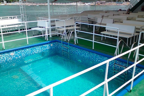 Для комфортного отдыха на теплоходе есть салон с баром, в котором проводятся встречи и лекции, там можно просто пообщаться и отдохнуть. Сауна с бассейном, где свободно помещается 5 человек, в бесплатном пользовании. Просторные открытые палубы для любования красотами Байкала.