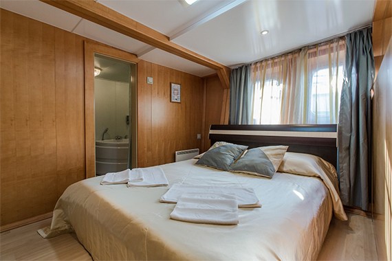Двухместная каюта со всеми удобствами, расположенная на верхней палубе. Площадь каюты ≈ 11 м². В каюте: одна двуспальная кровать, две прикроватные тумбы, телевизор со встроенным DVD, шкаф для одежды, ванная комната (раковина, душ, туалет) в одной зоне, фен, розетки 220V, прикроватные светильники, телефон (звонки по теплоходу), обогреватель.