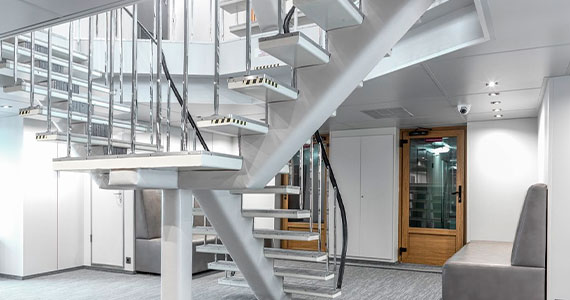 Теплоход относится к классу «Премиум» и готов принять на борт до 210 туристов. Внутреннее пространство теплохода получило минималистичное дизайнерское решение с элементами скандинавского стиля. Туристов ждут комфортабельные каюты на одного, двух или трех человек. Также возможно размещение в новых роскошных апартаментах классов «люкс» и «делюкс».