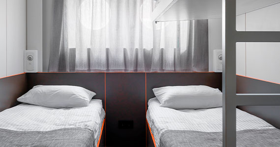 Однокомнатная двухъярусная каюта с удобствами, рассчитанная на размещение до трех человек, площадь каюты до 9 кв.м. В каюте три спальных места (не сдвигаются, верхнее место не складывается), шкаф для одежды, холодильник, минибар, сейф, телевизор, радио, душ, санузел, кондиционер, фен, сейф, два иллюминатора, электророзетка на 220V. Возможна продажа каюты в двухместном одноярусном размещении (по стоимости 2-местной каюты).