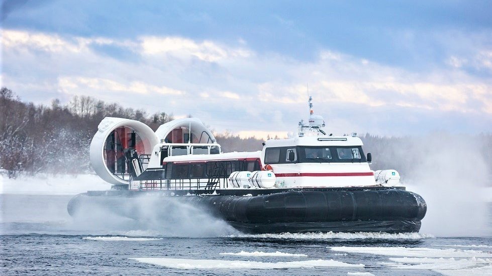 Высота воздушной подушки судна составляет 0,9 м, что позволяет ему двигаться над различными препятствиями, будь то перемещение по суше, льду или воде, при этом пассажиры могут спокойно отдыхать в комфортабельных креслах с откидной спинкой, пока не прибудут в место назначения.