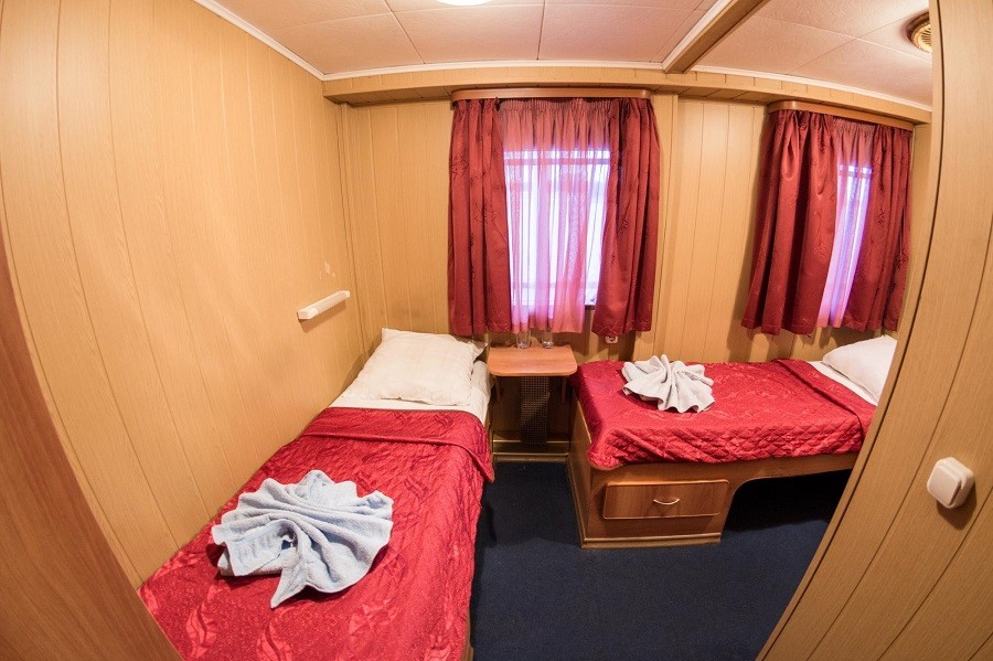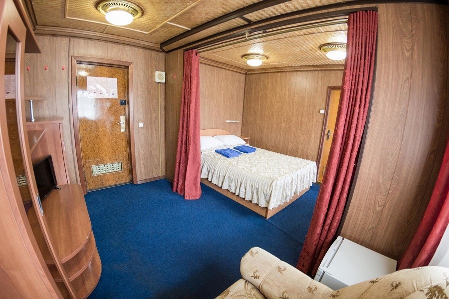 Для комфортного размещения туристов на борту каюты со всеми удобствами. Во всех каютах индивидуальный санблок, холодильник, телевизор (спутниковая система), кондиционер или центральная система вентиляции. Кондиционеры установлены в Президентских Люксах, Люксах, П/люксах, в 2-местных каютах на шлюпочной палубе, 2-местных каютах на средней палубе в носовой части, в 2-местных каютах на средней палубе в кормовой части №322, №323. В остальных каютах общая система вентиляции.