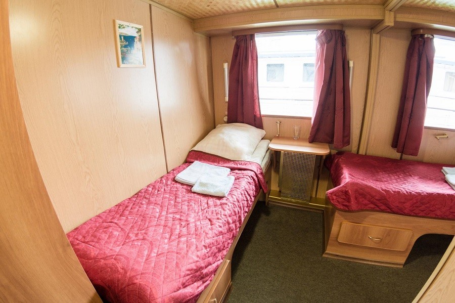 К категории ПК относятся каюты: 302, 324, 411. Двухместная каюта со всеми удобствами, расположенная на средней и шлюпочной палубах. Возможно размещение третьего человека на дополнительном спальном месте – раскладное кресло. В каютах на средней палубе общая система кондиционирования.