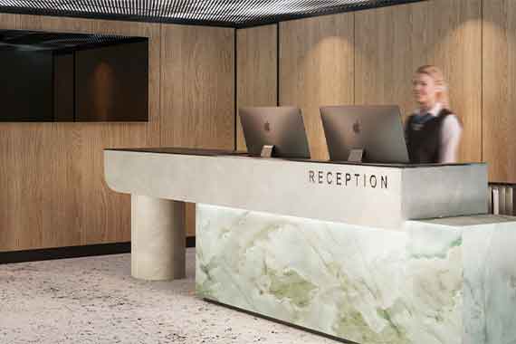 Эксклюзивный авторский дизайн выполнен в скандинавском стиле с использованием панелей из натурального дерева и камня в сдержанных и теплых тонах. Здесь вас встретит приветливый персонал и предложит удобно расположиться в зоне ожидания для гостей. Бесшумные лифты доставят вас на любую палубу теплохода. Лифтовая группа повторяет авторский дизайн и материалы лобби.