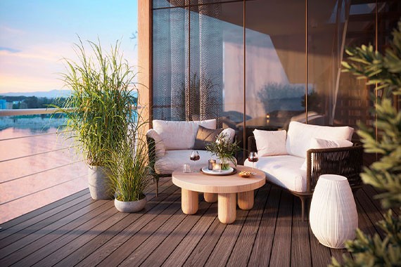 Двухкомнатная, комфортабельная каюта с современным интерьером, балконом и всем необходимым для отдыха В гостиной: диван, кресло, журнальный столик, холодильник, спутниковое ТВ, пуф, шкаф для одежды, телефон, радио, фен, капсульная кофемашина, электрочайник, сейф, балкон. В спальне: двуспальная кровать, прикроватные тумбы, фен, телевизор, панорамное окно, письменный стол, книжный стеллаж, кресло душ, санузел. Балкон: два кресла, кофейный столик.