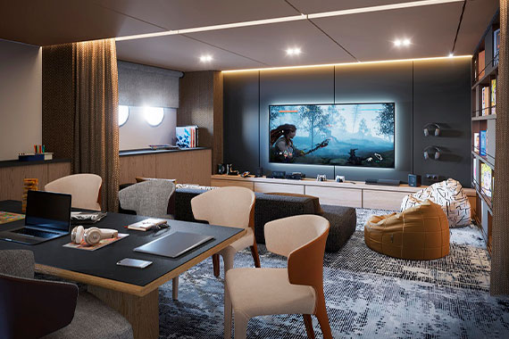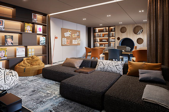 Детский клуб расположится на главной палубе в максимальном удалении от спальной зоны. В нем будут работать профессиональные аниматоры, которые предложат маленьким путешественникам самые разные творческие и обучающие занятия. Подростки и даже многие взрослые будут в восторге от Игротеки с огромным экраном для видеоигр.