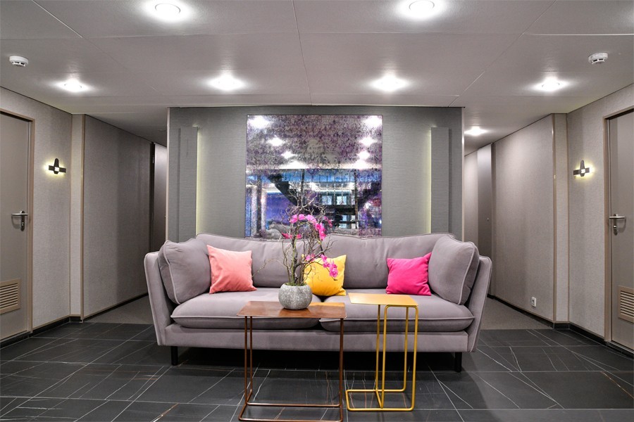 Для комфортного путешествия гостям предлагаются 94 двухместные каюты: 66 кают категории «Полулюкс с балконом» и 28 кают «Комфорт Премиум».