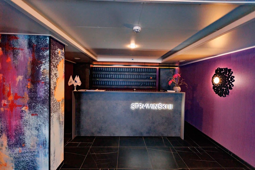 «Игорь Стравинский» – комфортабельный четырехпалубный теплоход-пансионат проекта 302 был построен в Германии и ранее работал только с иностранными туристами. В навигацию 2023 теплоход впервые принял на борт путешественников из России. После модернизации 2019 года внутренняя отделка теплохода отличается современными интерьерами, выполненными в элегантном минималистичном стиле.