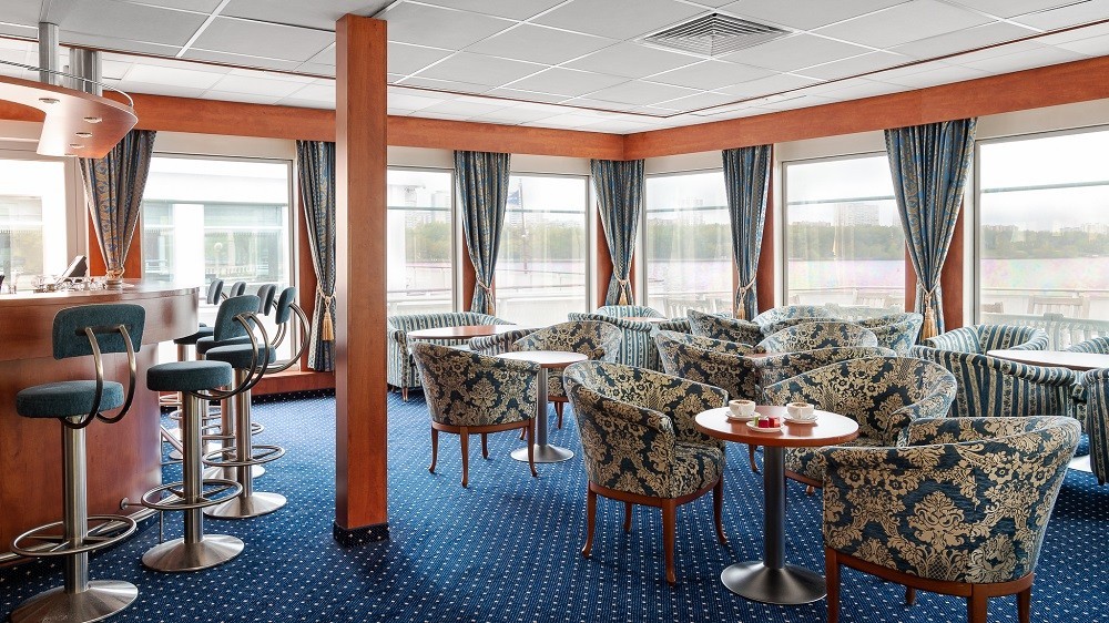 На судне работает 2 бара: панорамный бар и лаундж-бар. Вы сможете порадовать себя богатым выбором напитков, закусок и десертов, а также насладиться ароматным кофе Jardin Supremo (арабика из Колумбии), приготовленным профессиональным бариста.