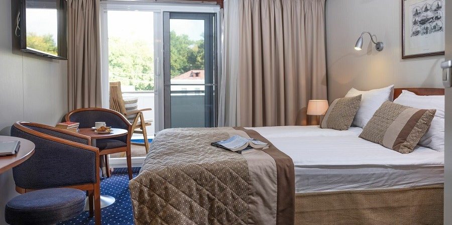 Для комфортного размещения гостям предлагаются: 2 каюты категории «Панорама с балконом» с панорамным видом и увеличенным балконом, 72 двухместные и 2 одноместные каюты «Полулюкс с балконом», 28 двухместных и 4 одноместных каюты «Полулюкс».