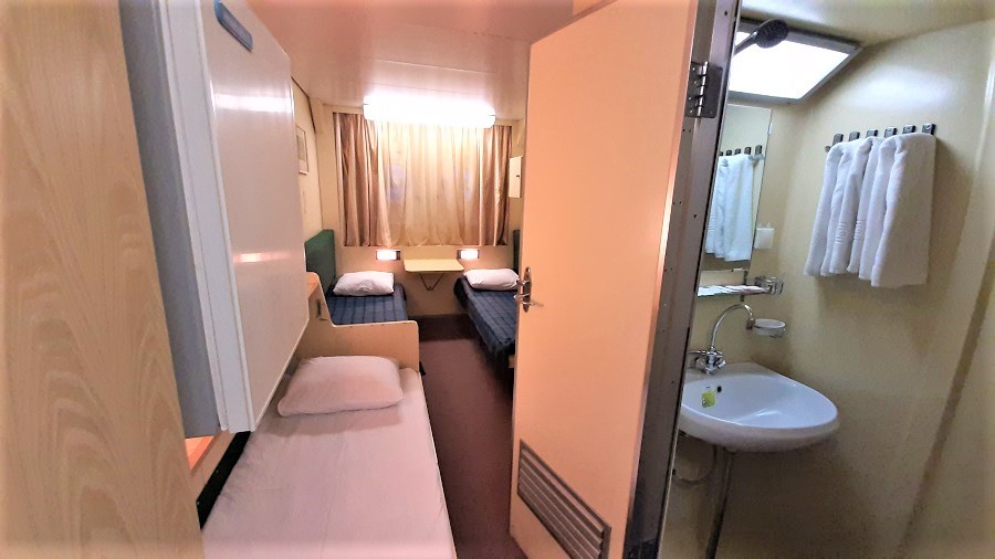 К каютам категории Бэта относятся следующие номера кают: 101–120. Трехместная каюта (площадь ≈ 10,5 m²) со всеми удобствами, расположенная на нижней палубе. В каюте: 3 нижних раздельных спальных места, шкаф, кондиционер, холодильник, радио, раковина, душ, туалет, розетка 220 V, два иллюминатора.