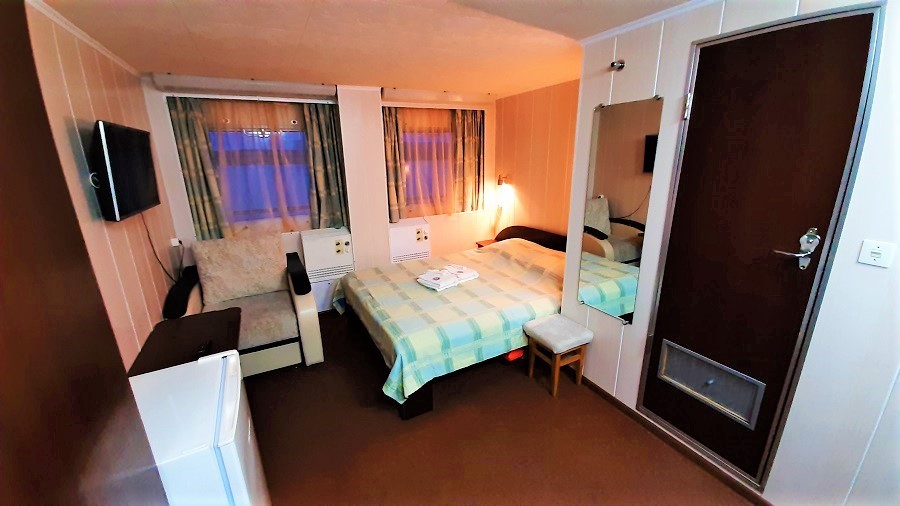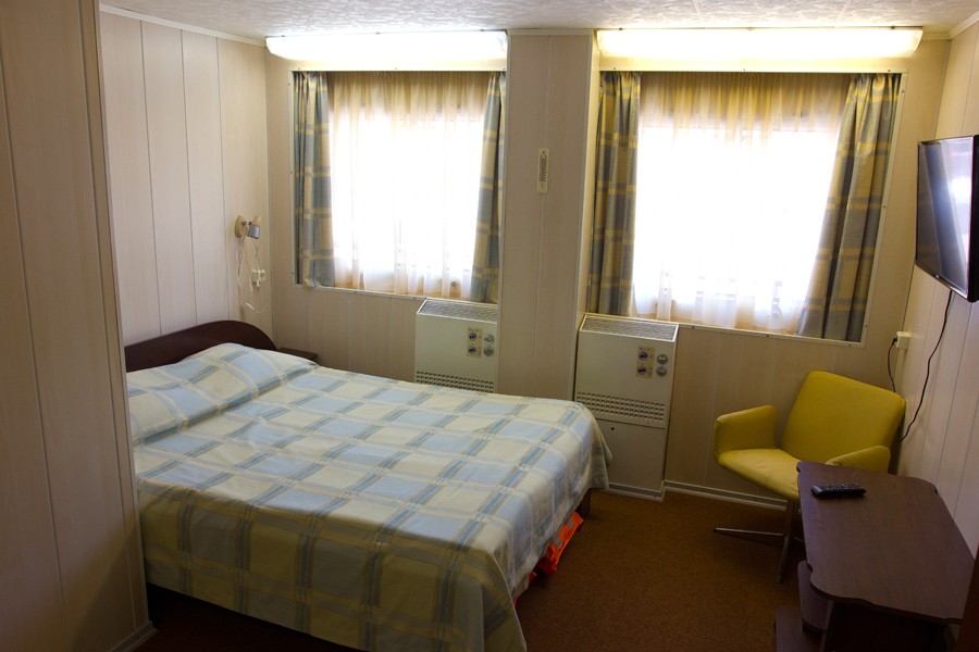 К каютам категории Люкс относятся следующие номера кают: 301. Двухкомнатная двухместная каюта (площадь ≈ 26 m²) со всеми удобствами, расположенная на средней палубе. В каюте: гостиная, спальня, двуспальная кровать, двухспальный диван, кресло, шкаф, кондиционер, холодильник, радио, спутниковое ТВ, раковина, душ, туалет, розетка 220 V, 4 окна. Возможно размещение третьего и четвертого человека на дополнительном месте.