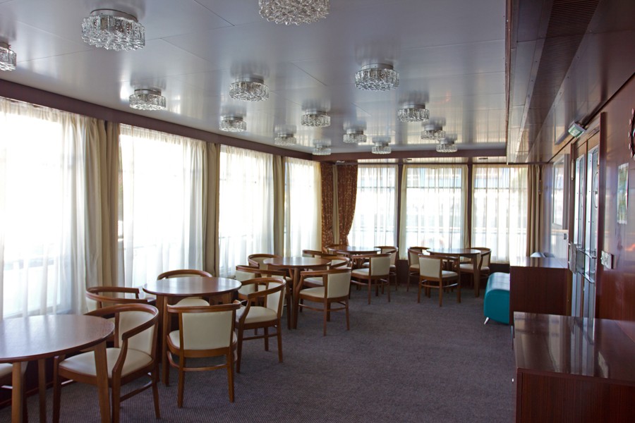 Питание организованно в две смены. На шлюпочной палубе для туристов работают два бара — «Волга» и «Нева», где путешественников ждут закуски, фрукты, алкогольные и безалкогольные напитки. Трехразовое питание организовано в панорамном ресторане «Кама»: завтрак по системе «шведский стол», обед и ужин — по заказному меню.